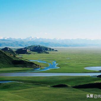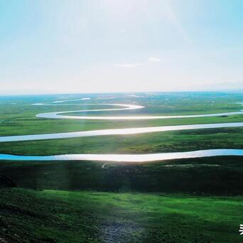 数不清的泉源分布在草原上,与融化的雪水汇流成河,形成巴音郭楞蒙古自治州的母亲河——开都河。巴音布鲁克最著名的景观“九曲十八弯”是开都河在平展辽阔的草原上,弯弯曲曲流淌的路径,彩带般在草原上逶迤蜿蜒,以基本相同的弧度曲折伸向远方。
